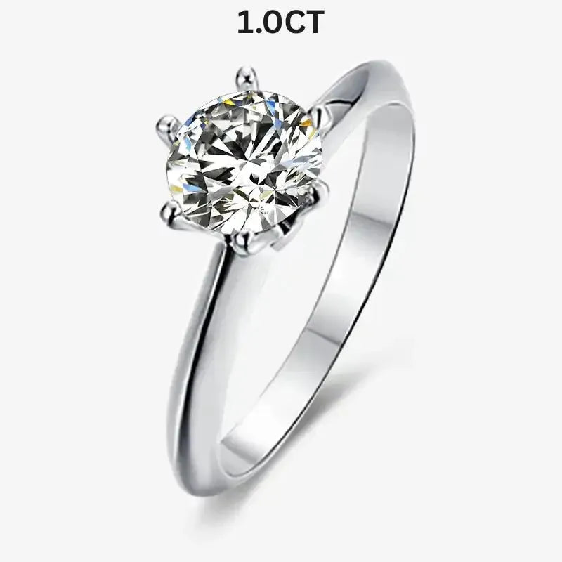 The Novalune Moissanite Engagement Ring pairs 925 sterling silver with layered white gold plating for lasting shine. This elegant solitaire is available in 1.0–3.0 carats of premium moissanite, delivering a dazzling shine from every angle.